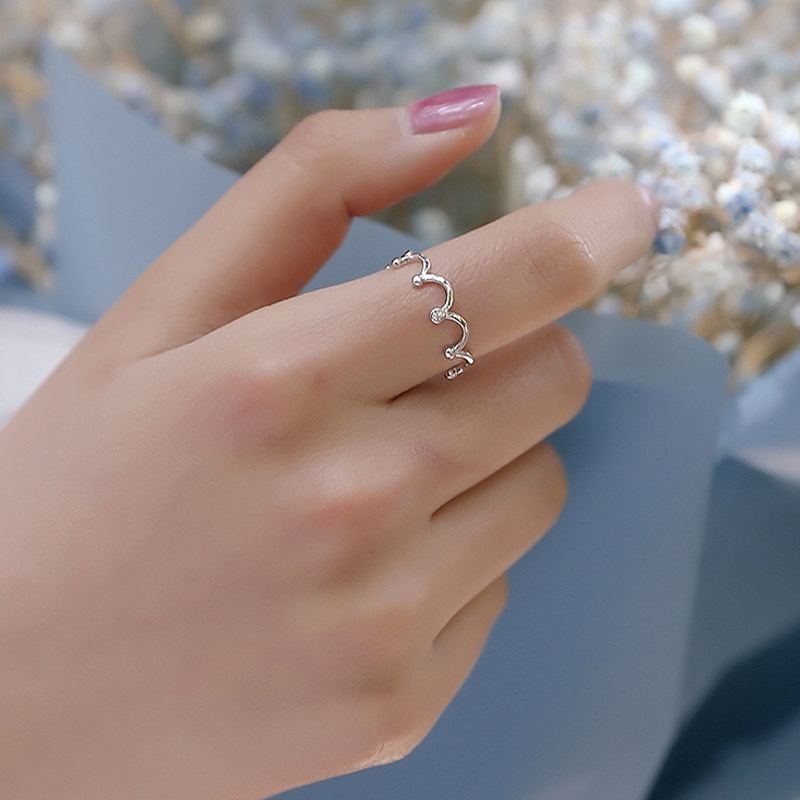创意皇冠波浪925纯银开口戒指学生清新简约浪漫活口食指环尾戒女