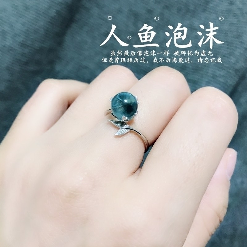 人鱼泡沫戒指女S925纯银个性清新学生开口食指潮人简约不褪色指环