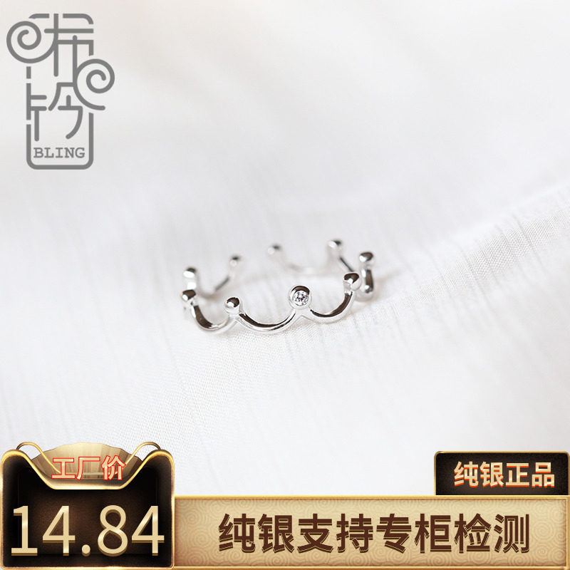 银戒指小简约日韩女王的皇冠纯银戒指女个性开口学生潮人素戒清新