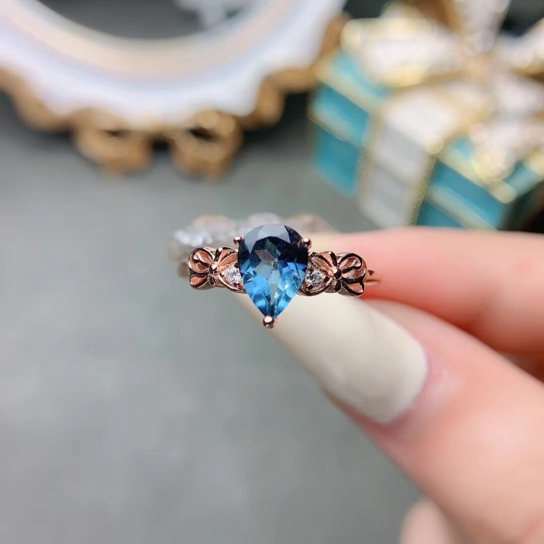 s925纯银女戒空托 水滴形6*8mm轻奢 简约戒指 小清新 学生饰品