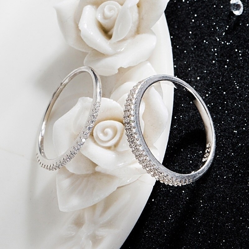 S925纯银细钻戒指女日韩版精致简约清新百搭碎钻仿真学生超窄指环
