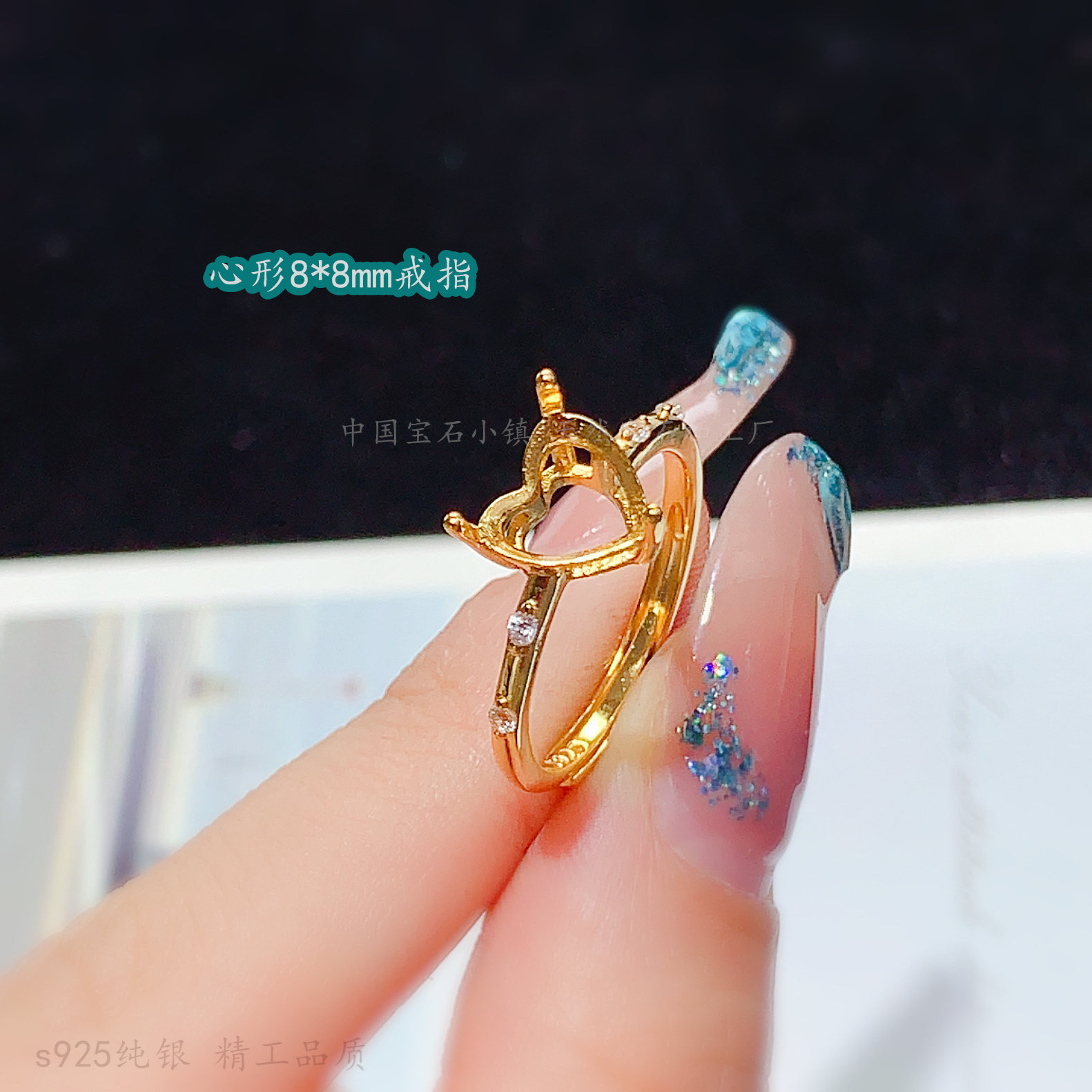 爱心形8*8mm戒指空托 轻奢简约爪镶晶石款女戒托s925纯银清新学生