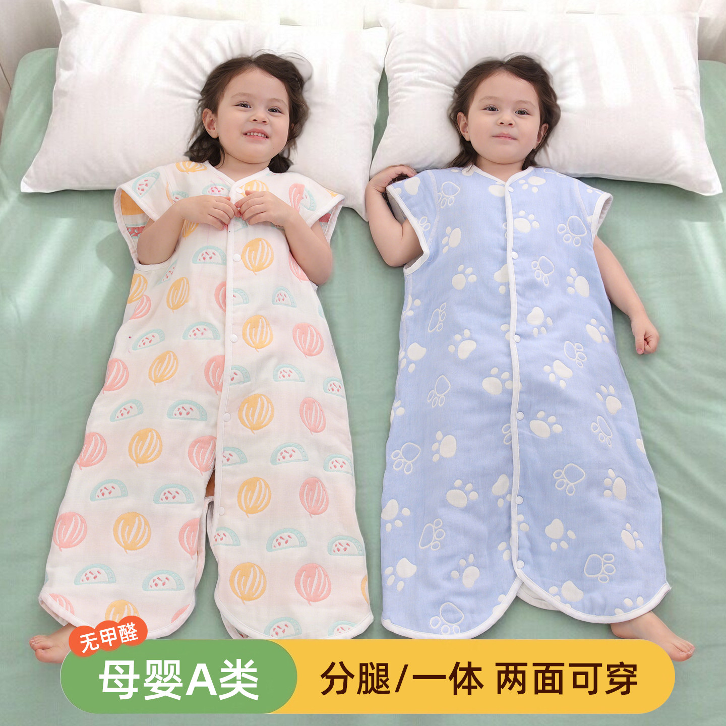 爱贝迪拉婴儿纱布睡袋春夏薄款分腿儿童3到6岁宝宝防踢被四季通用
