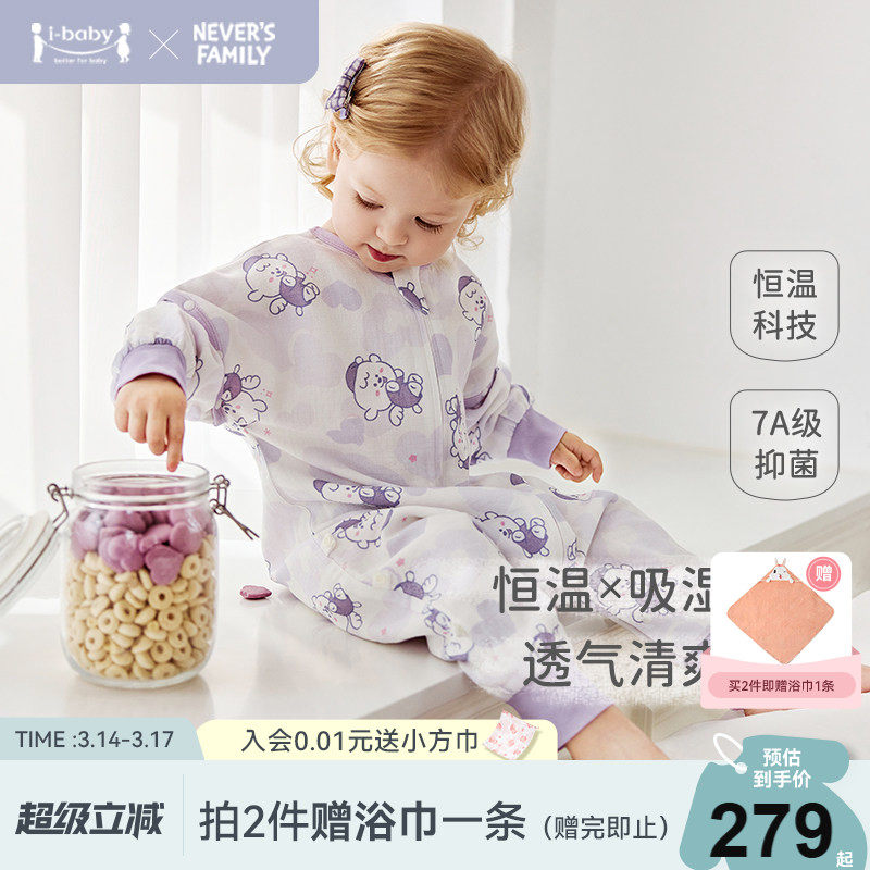 ibaby奈娃联名恒温儿童纱布睡袋男女童宝宝防踢被春夏婴儿睡衣