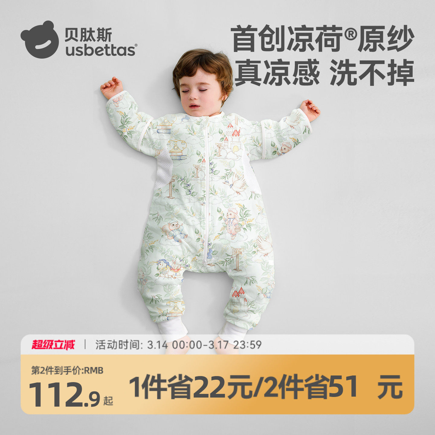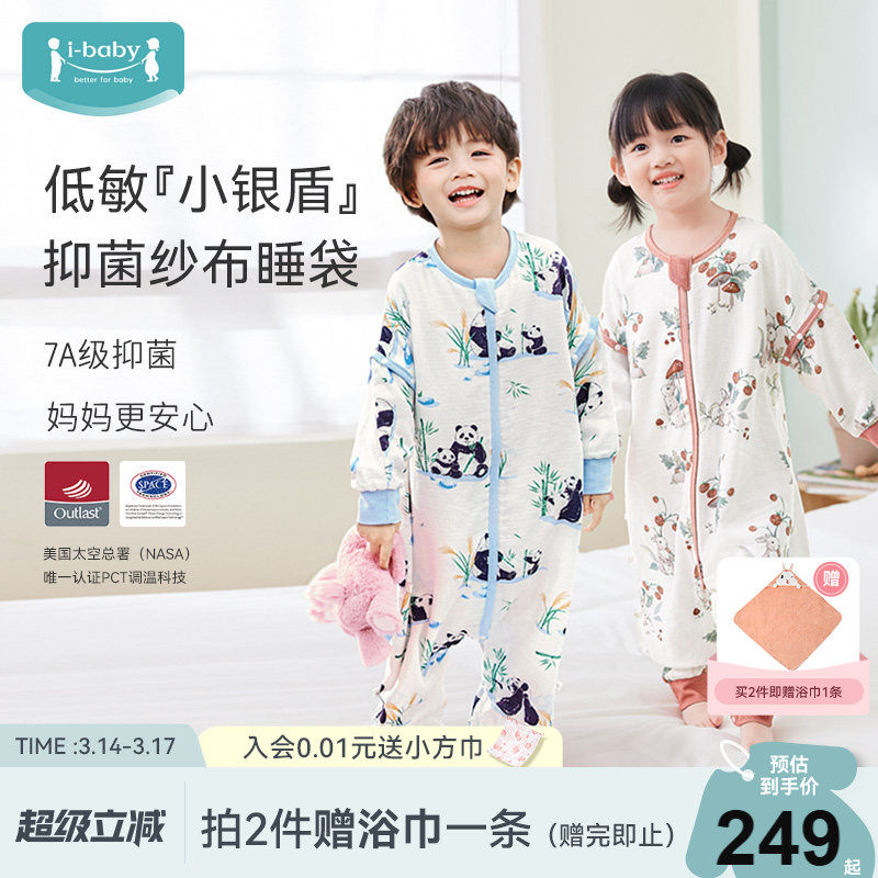【李佳琦直播间】ibaby恒温儿童纱布睡袋奈娃抑菌防踢被春夏透气