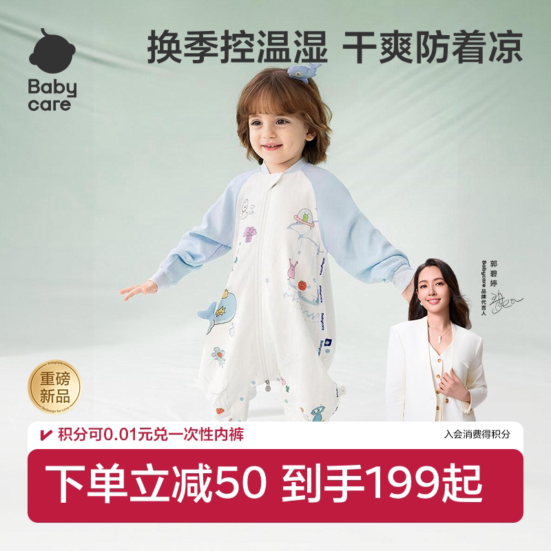 babycare婴儿睡袋春夏薄款纱布儿童睡袋四季通用连体睡衣宝宝睡袋
