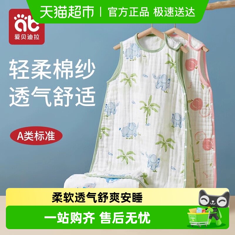 爱贝迪拉婴儿纱布睡袋春夏薄款宝宝新生幼儿小月龄防踢被四季通用