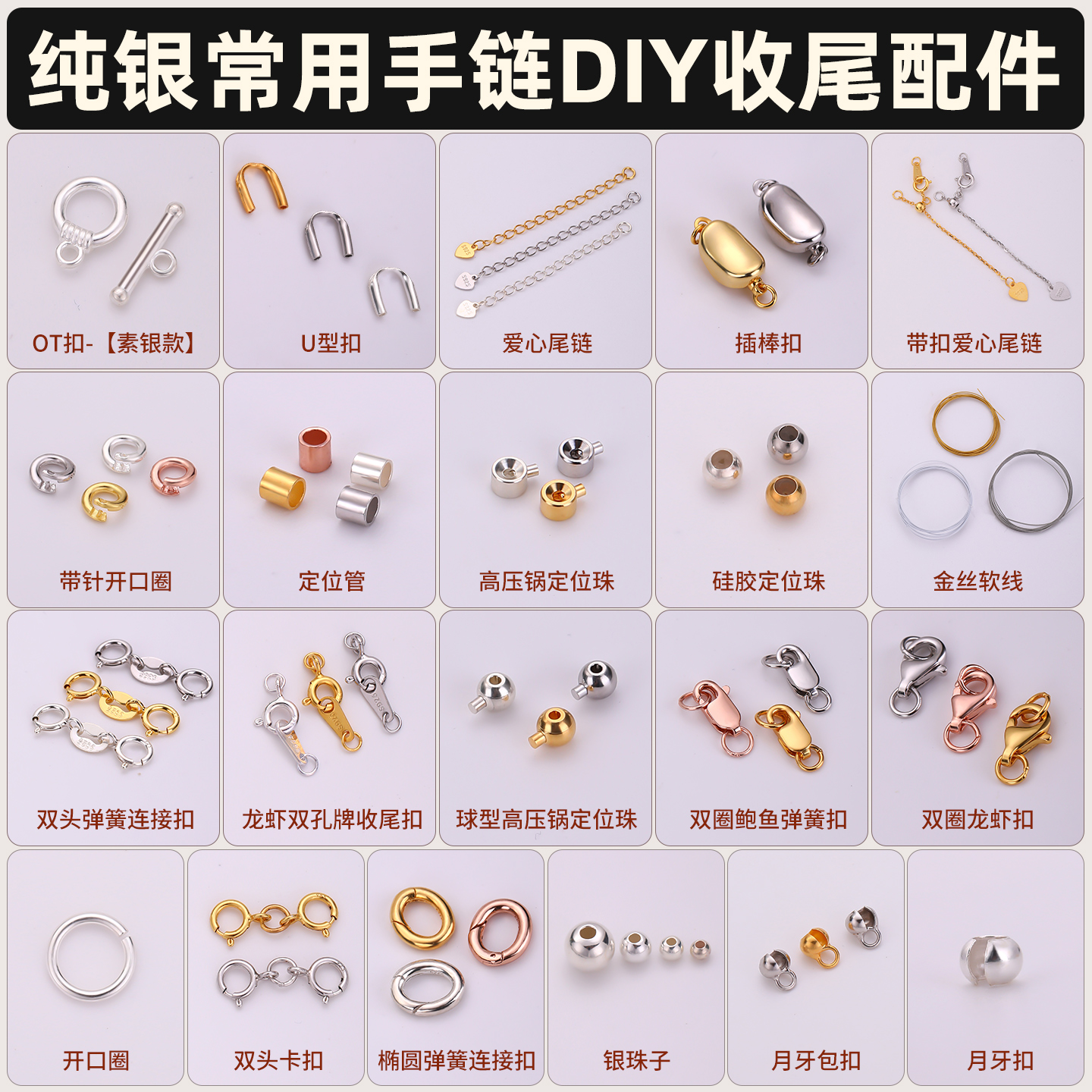 DIY配件 S925纯银经典百搭珍珠项链豌豆扣元宝扣马背扣手链插棒扣