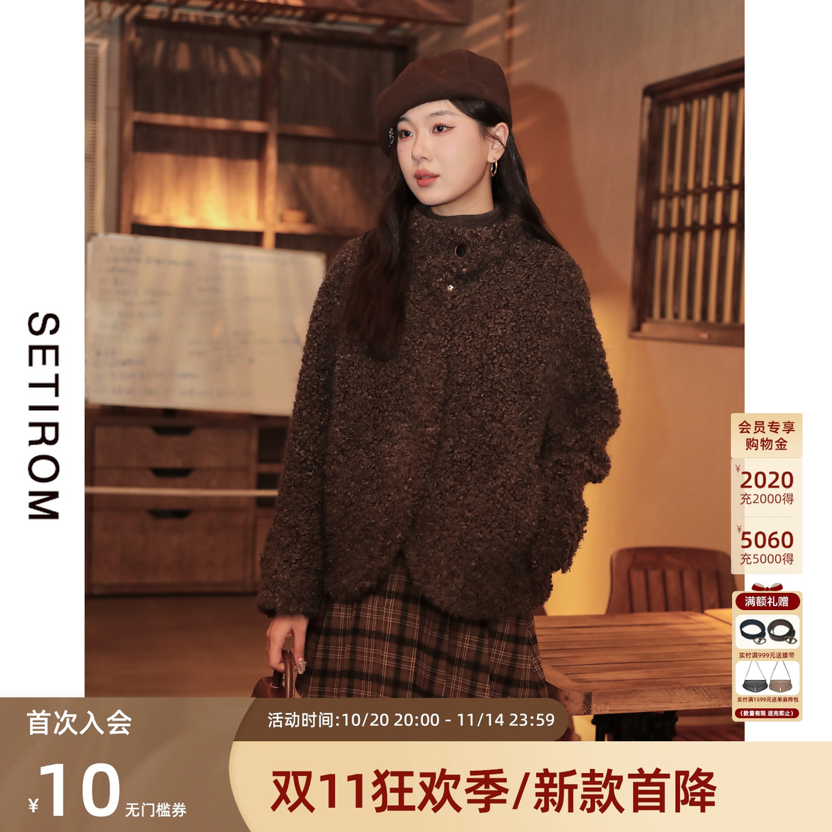 西町村屋韩系复古毛绒外套女秋冬新款气质短款宽松上衣XH9D10110