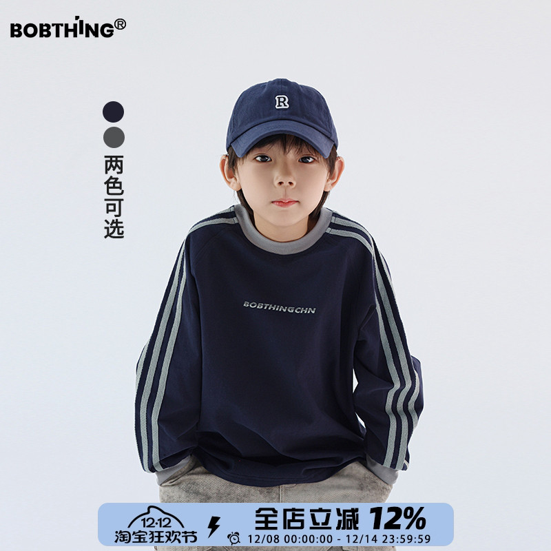 男童运动风T恤秋冬季长袖上衣儿童针织棉打底衫潮牌童装圆领体恤