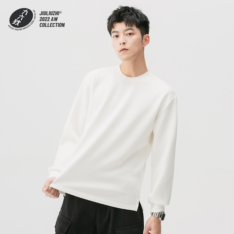 九六致原创秋冬季宽松白色长袖打底衫T恤男士潮纯色休闲内搭体恤