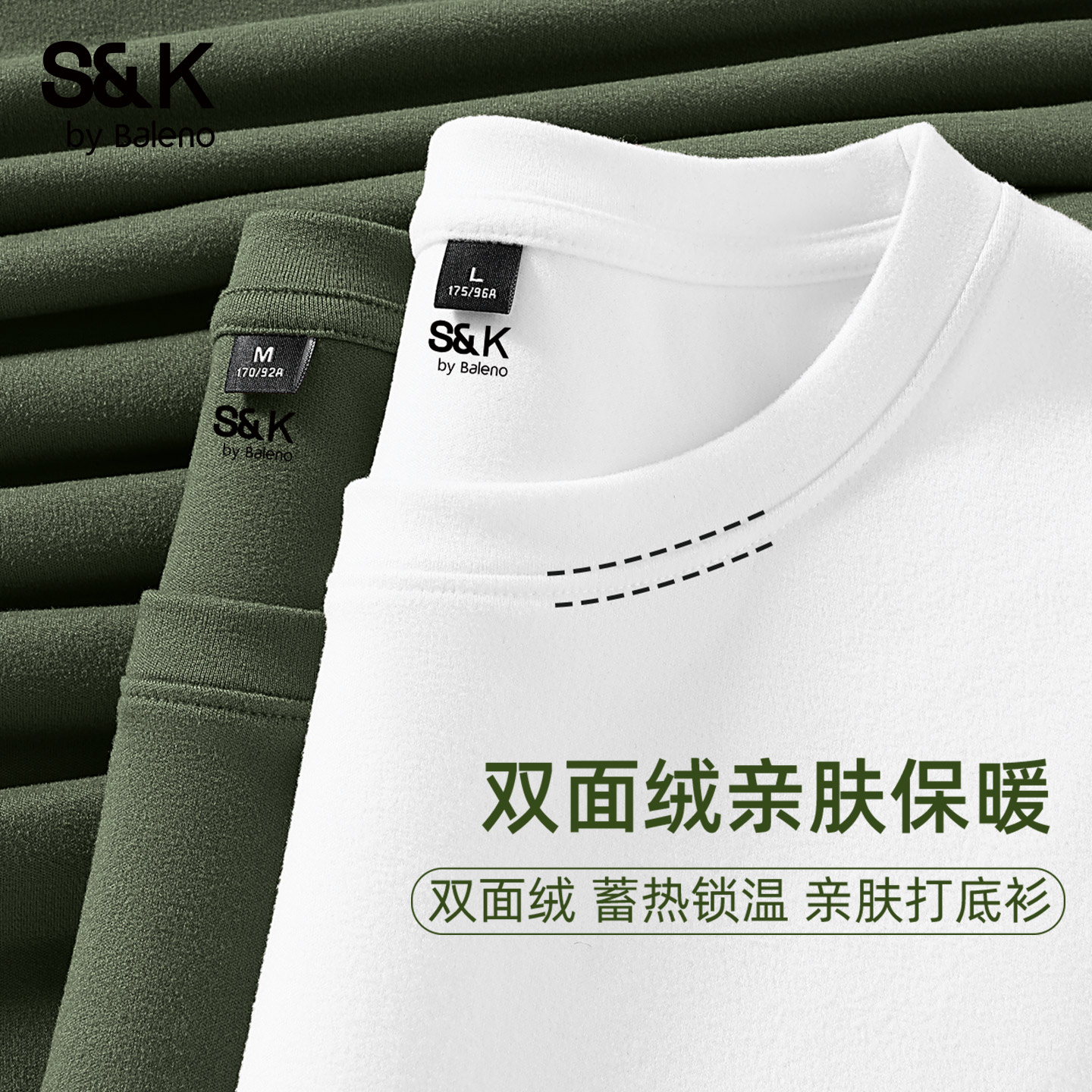 班尼路S&K双面绒长袖t恤男秋冬季保暖圆领打底衫内搭男士加绒体恤