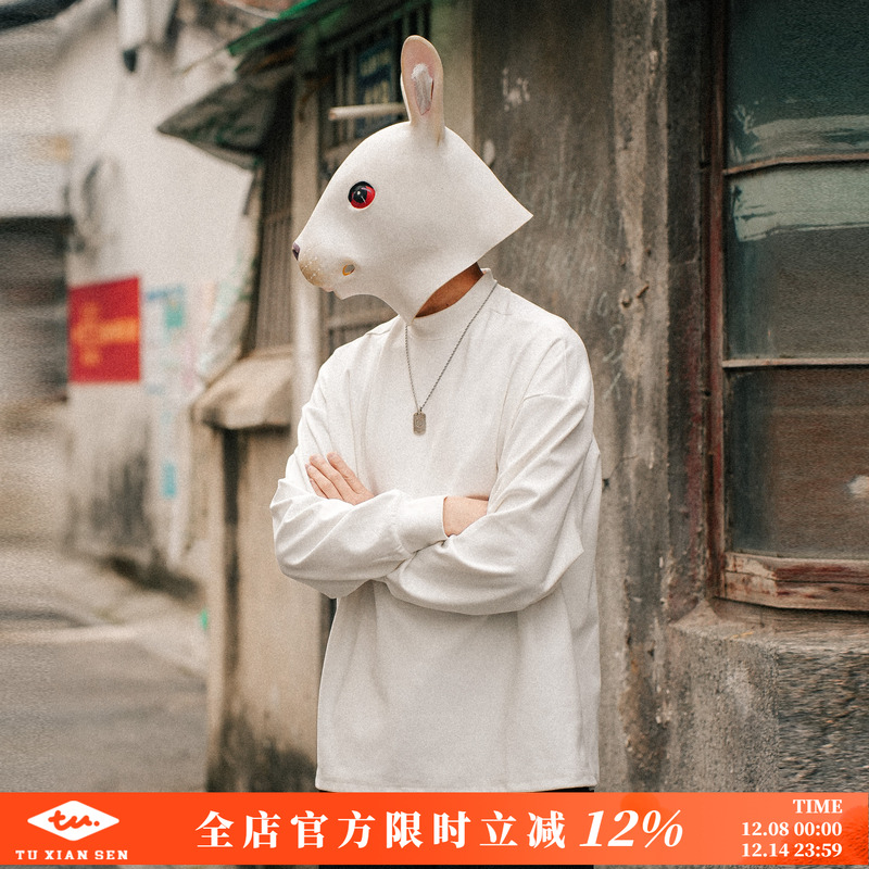 兔先森秋冬季重磅德绒半高领长袖t恤男女纯色保暖上衣打底衫体恤