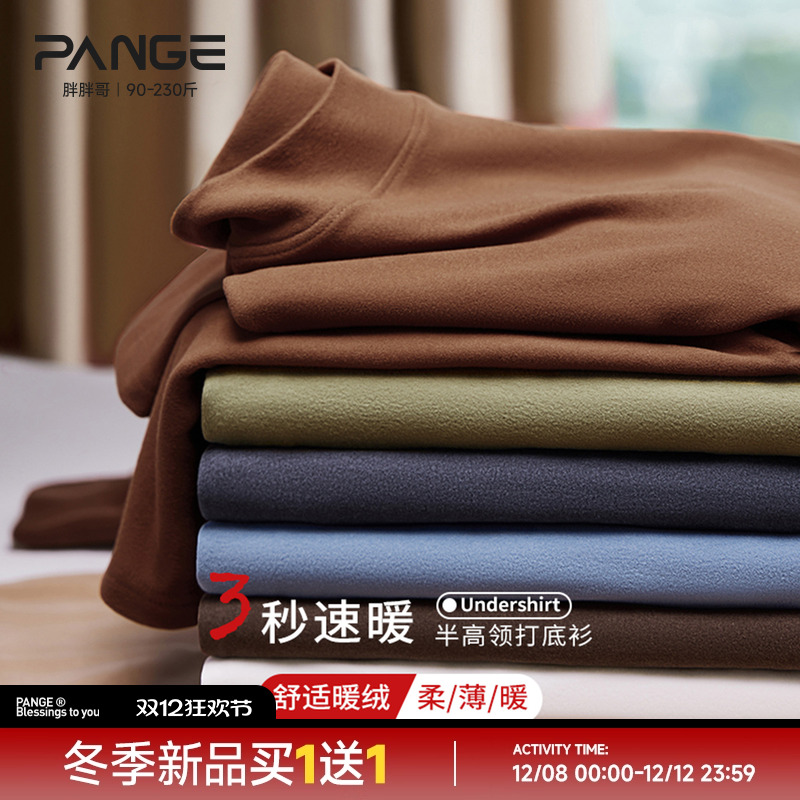 胖胖哥10A抗菌德绒长袖t恤男秋冬季保暖半高领打底衫宽松体恤衫