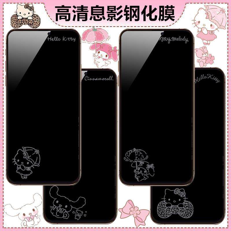 可爱kt猫适用苹果17promax防窥息影膜16pro卡通钢化膜iPhone15/14防偷窥带图案手机贴膜13
