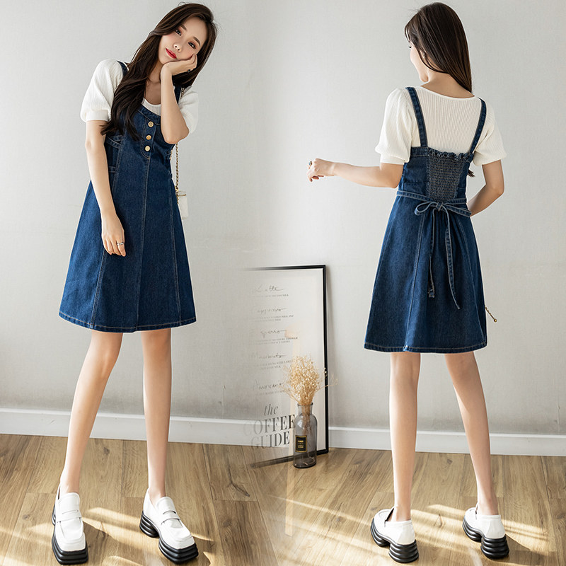 减龄牛仔背带裙女2026夏新款宽松大码显瘦吊带连衣裙a字包臀短裙