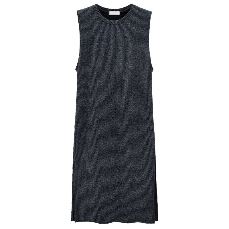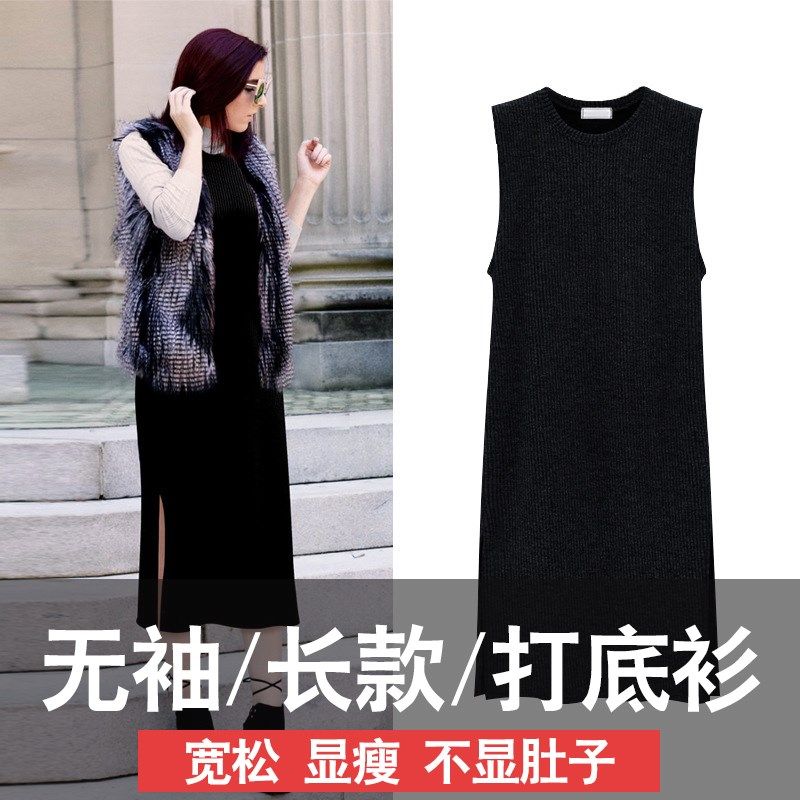 新款春秋连衣裙女大码开叉针织中长款冬季背带无袖打底包臀背心裙
