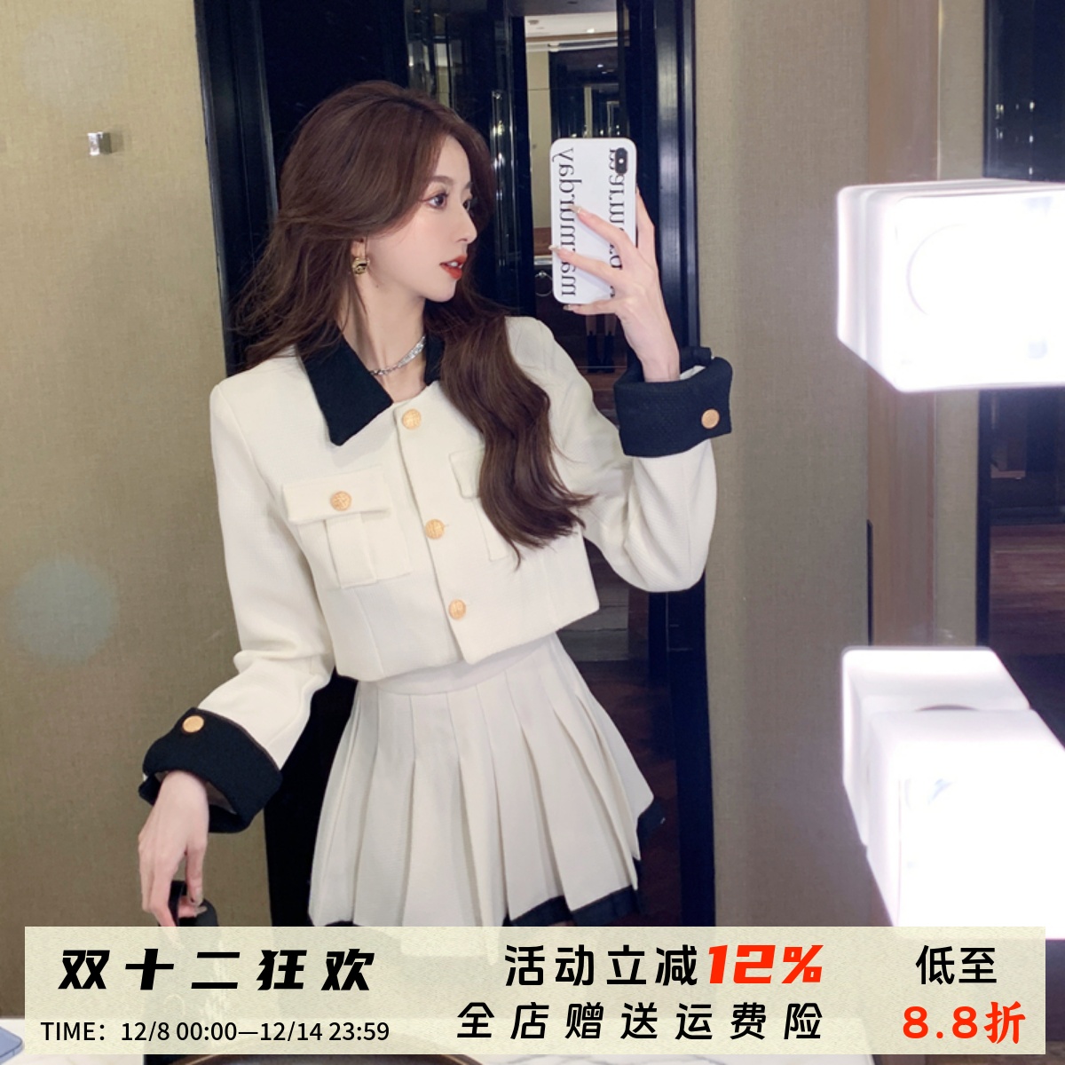 法式气质名媛短款西装外套半身裙两件套2024春秋新款小香风套装女