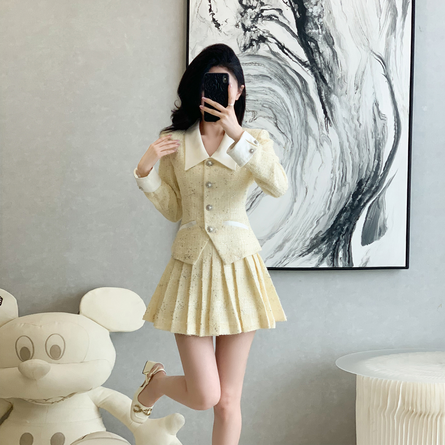 名媛气质高级感小香风套装裙女2025春季新款高腰百褶半身裙两件套