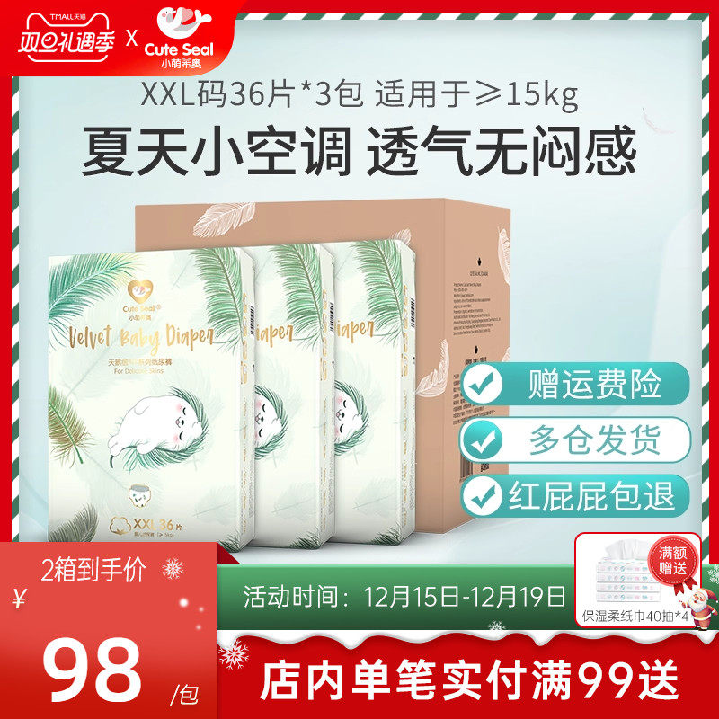 小萌希奥婴儿纸尿裤超大码XXL码天鹅绒Air尿不湿超薄透气108片箱