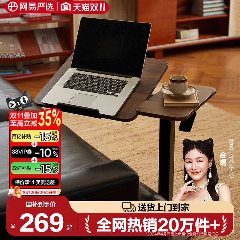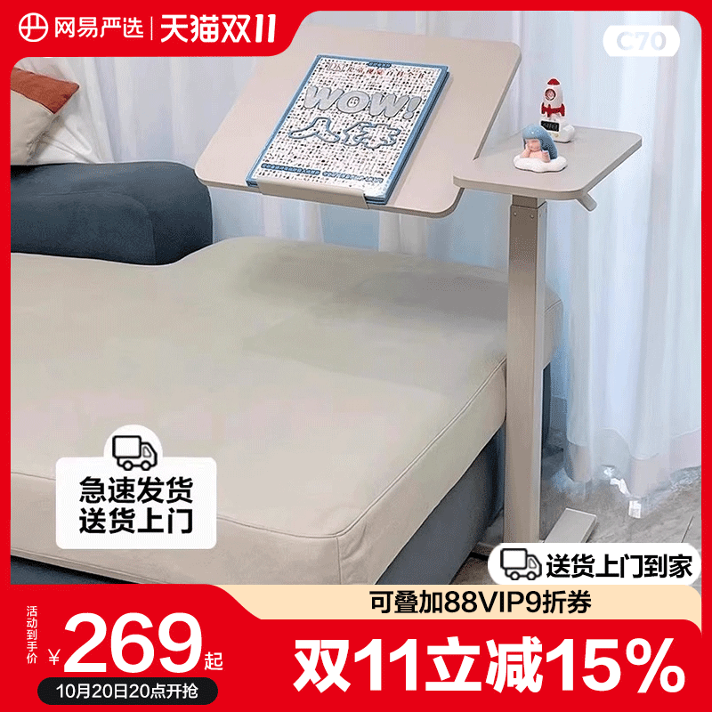 【金靖推荐】网易严选实木床边桌可移动升降电脑桌任意桌办公书桌