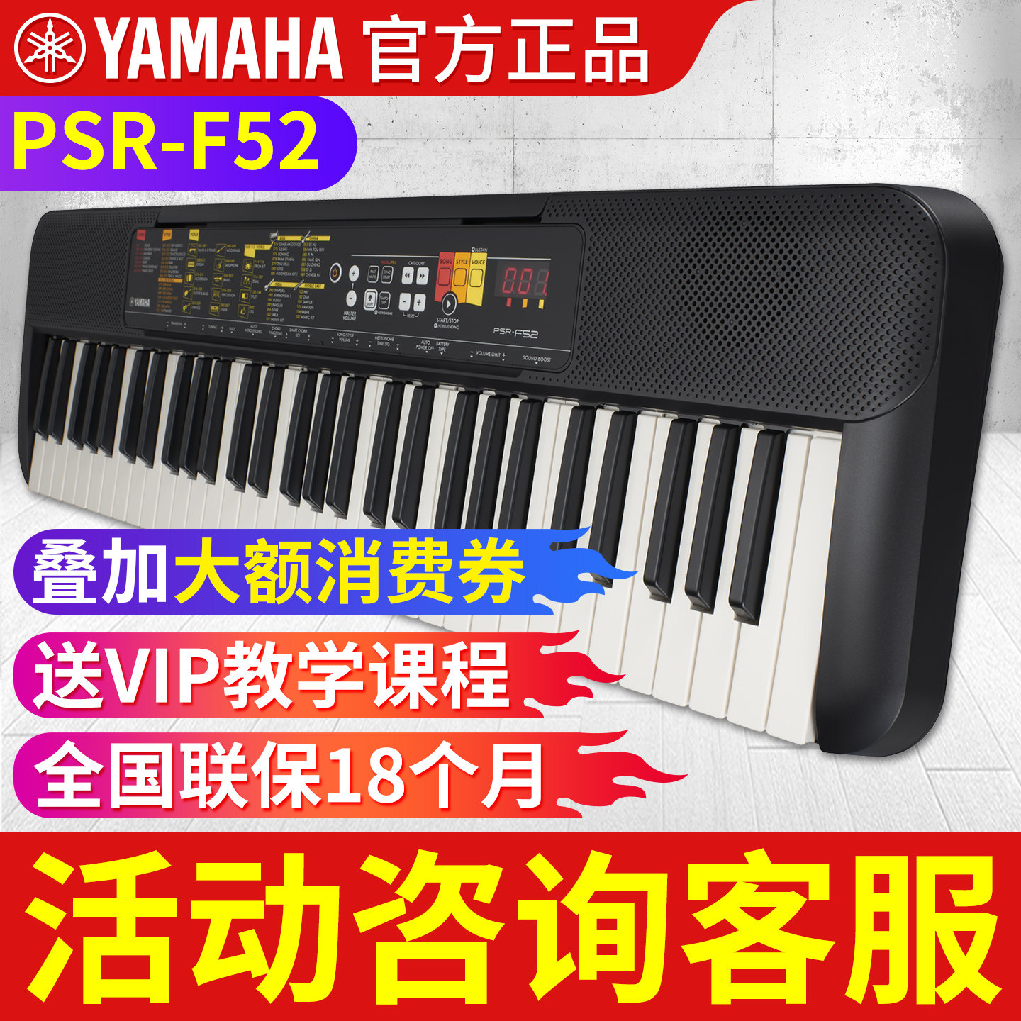 雅马哈电子琴PSR-F52教学家用儿童初学者入门成人幼师61键便携式