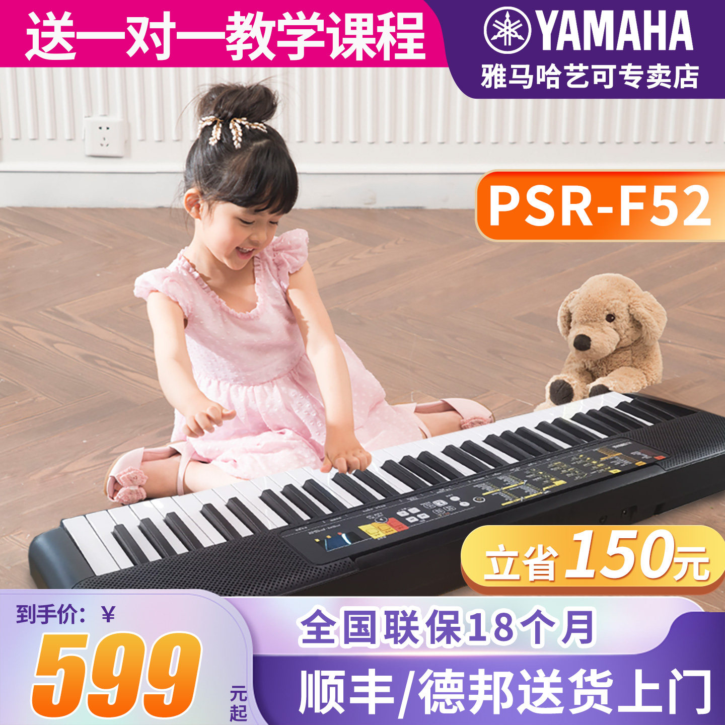 雅马哈电子琴官方旗舰店F52初学者儿童专业入门61键家用幼师专用