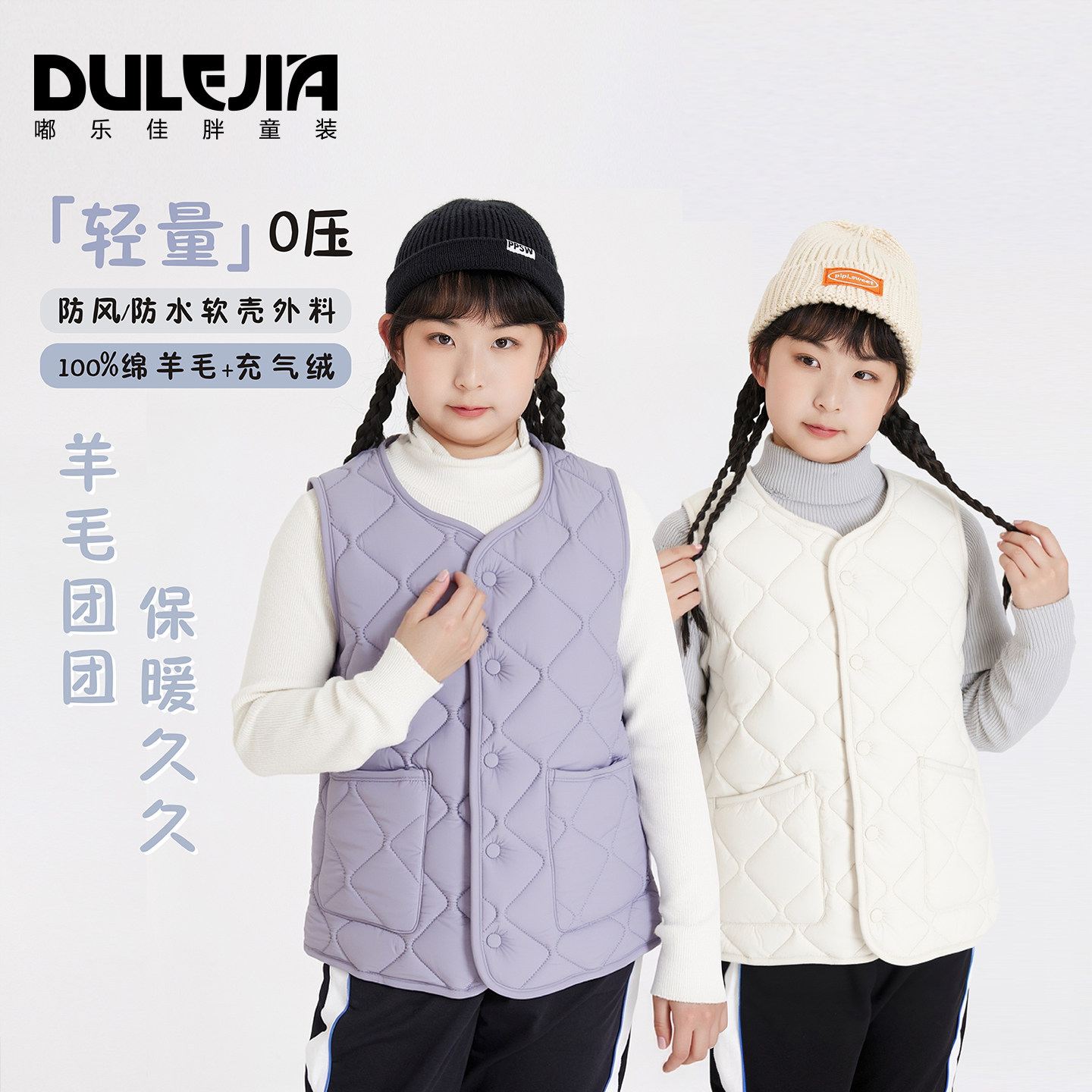 胖女童绵羊毛马甲加肥加大码中大儿童装加厚V领棉服打底保暖内胆