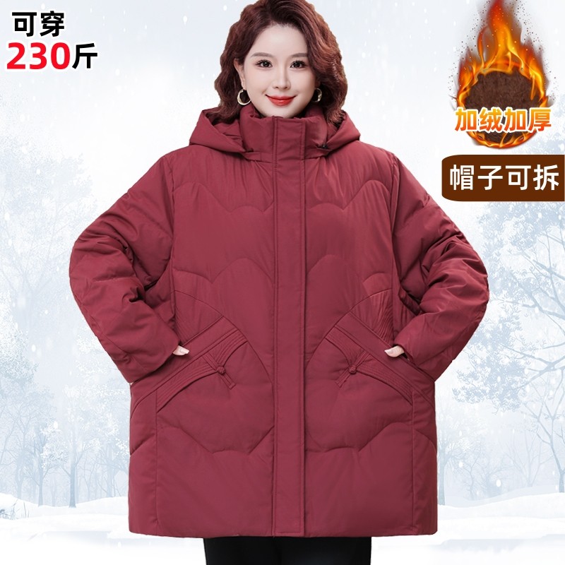 特大码胖妈妈冬装羽绒棉袄中老年加肥加大棉衣服女宽松遮肚厚外套