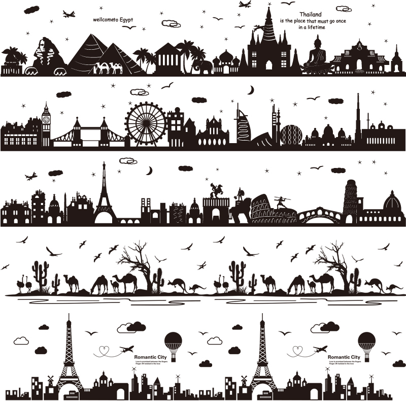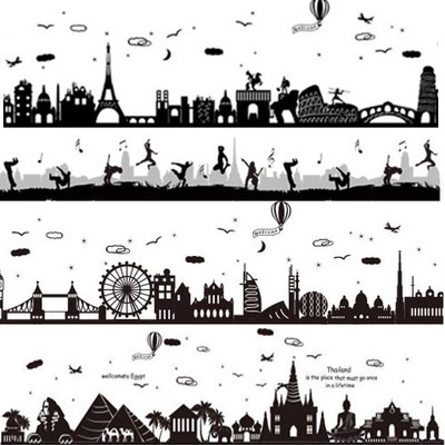 速发墙贴纸贴画黑建剪影白筑装脚线墙角线腰线贴墙纸自粘宿舍踢饰