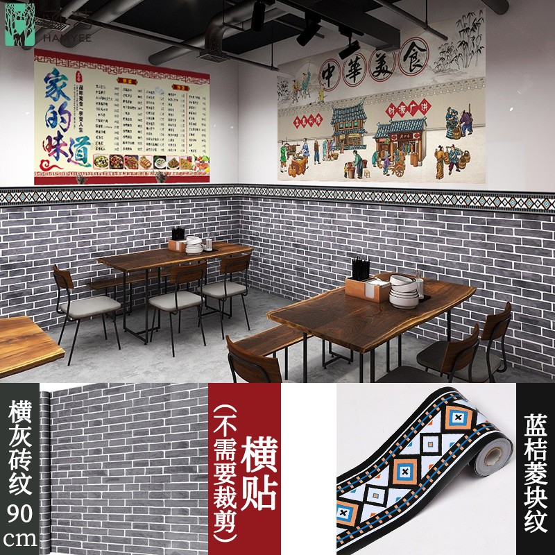 仿古砖墙贴商用墙裙踢脚腰线客厅阳台半墙面遮丑装饰壁纸自粘防水