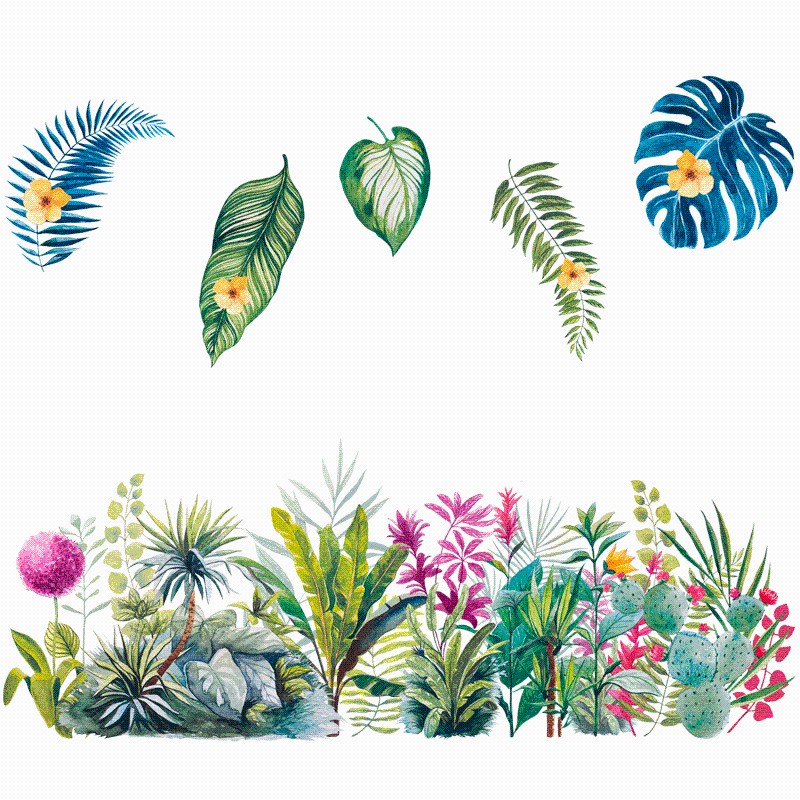 速发自贴热带植物叶子踢脚纸房门卧室墙裙装饰品贴线田园壁纸墙粘