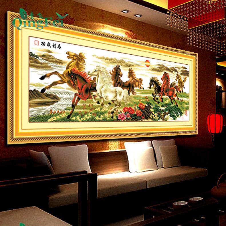Dmcks十字绣八骏图马到成功新款客厅家和万事兴山水画大幅2米满绣