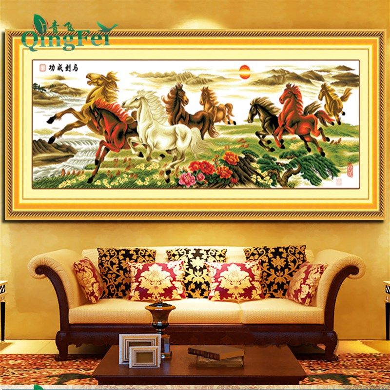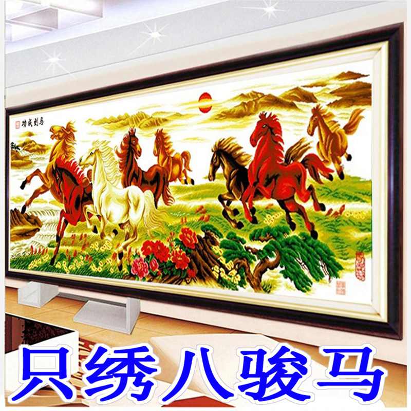 机绣十字绣成品八骏图马到成功八骏奔腾八马图1.5米1.8米2米家用
