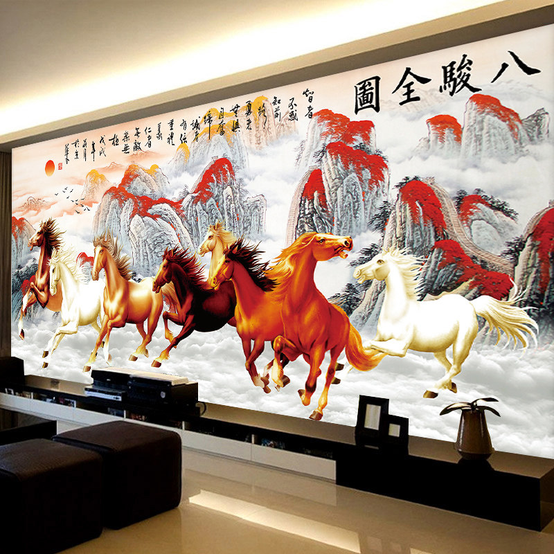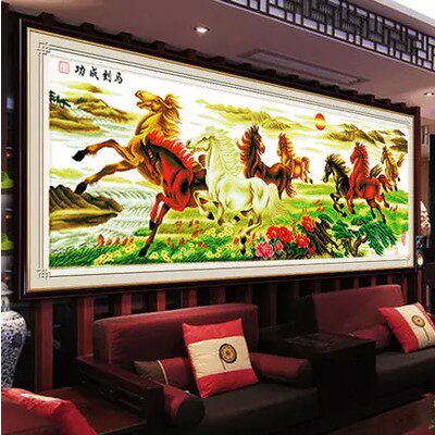 蒙娜丽莎十字绣马到成功八骏图2.5米2米客厅大幅印花2026新款