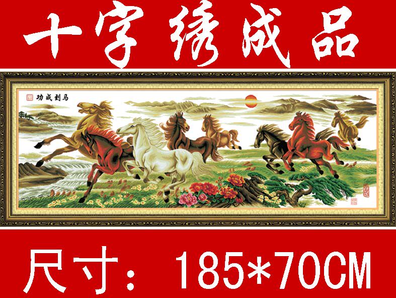 包邮纯手工十字绣成品八骏图马到成功八骏奔腾2米大画绣好的现货