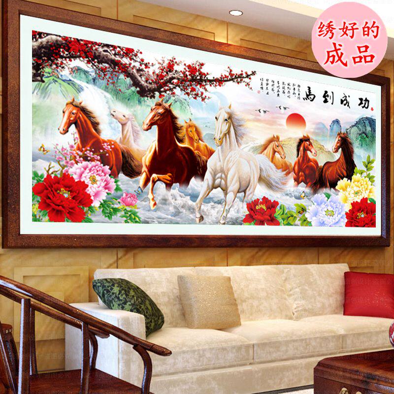 绣好的纯手工十字绣成品马到成功八骏图2米骏马奔腾机绣客厅挂画