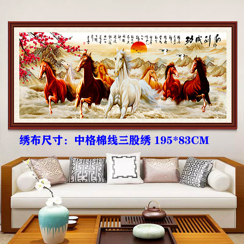 经典款十字绣马到成功八骏图客厅大画2米山水风景梅花满绣自己绣