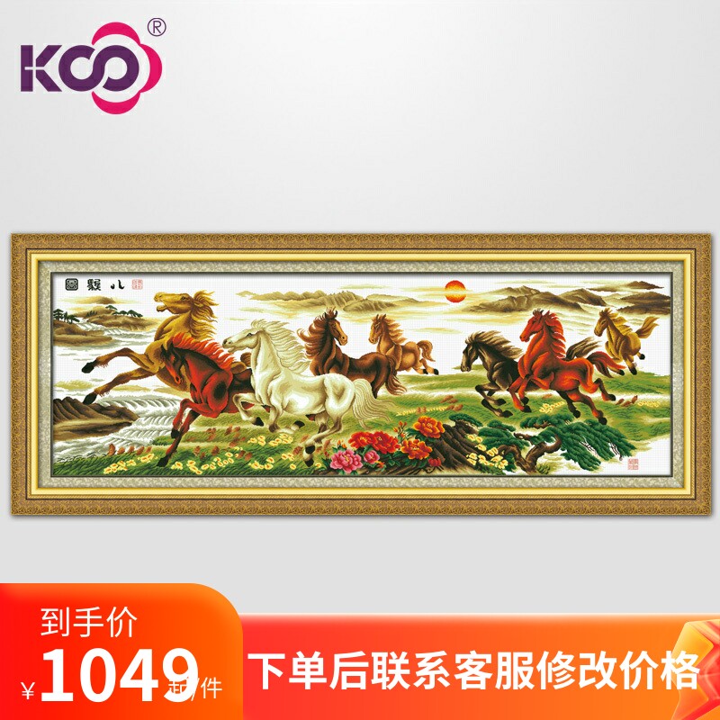 KS十字绣客厅办公室大画骏马飞腾2米4八骏图客厅动物马大幅八骏马