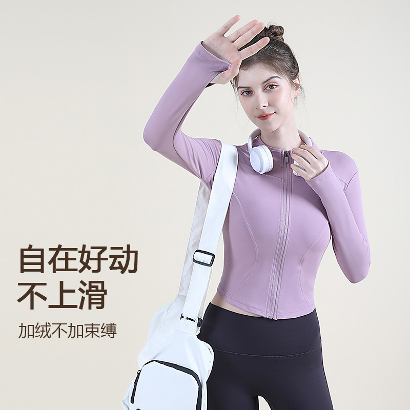 加绒立领上衣秋冬款运动外套女收腰跑步服饰健身服弹力瑜伽服套装