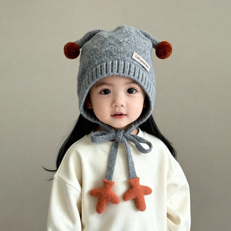 儿童帽子冬季护耳加厚针织保暖秋冬外出女童毛线帽可爱男童帽围巾
