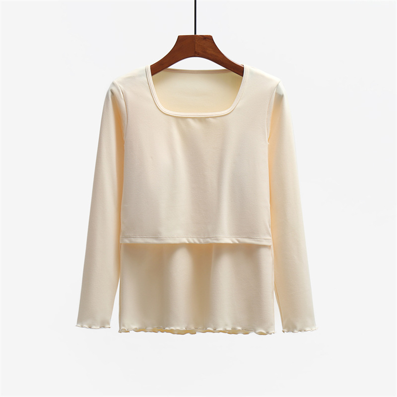 哺乳上衣外出辣妈款孕妇装内搭打底衫德绒可外穿喂奶春秋款带胸垫