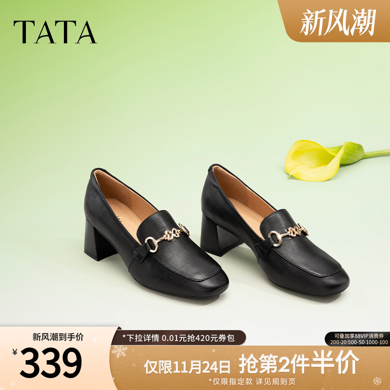 Tata他她高跟乐福鞋女英伦风粗跟小皮鞋女款2024春季新款WDB03AA4
