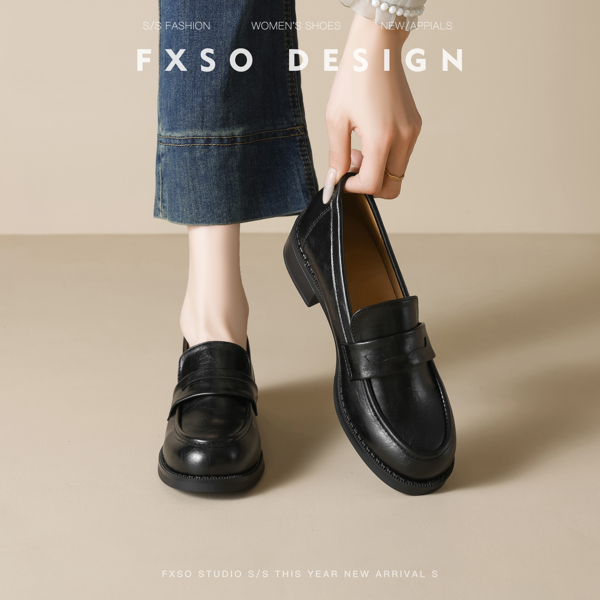 FXSO方巷真皮厚底小皮鞋子2025冬季新款英伦风百搭粗跟乐福鞋女款