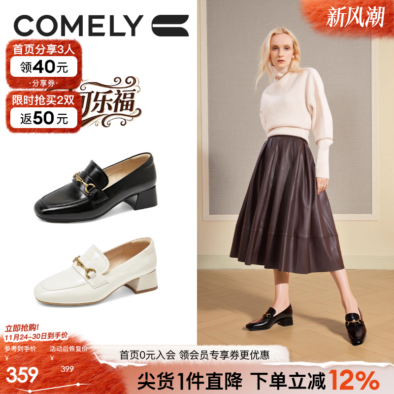 有钱钻|蹀愫斜方头粗跟小皮鞋女百搭乐福鞋TA54522-10