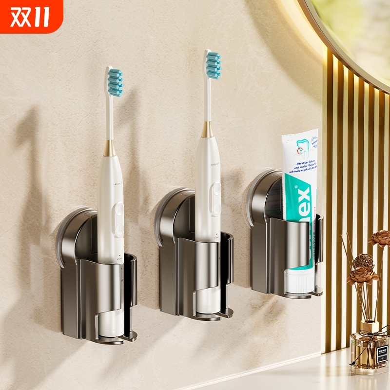 吸盘电动牙刷架家用壁挂式免打孔卫生间厕所牙杯牙具挂墙式置物架