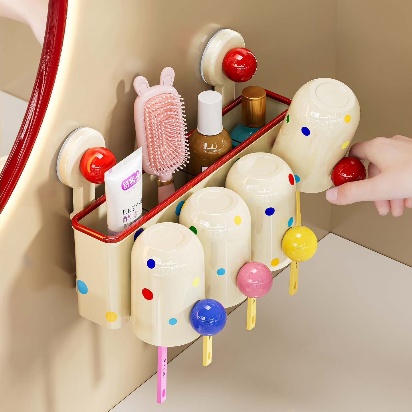 2025新款牙刷置物架壁挂式免打孔多巴胺吸盘漱口杯子收纳架洗漱杯