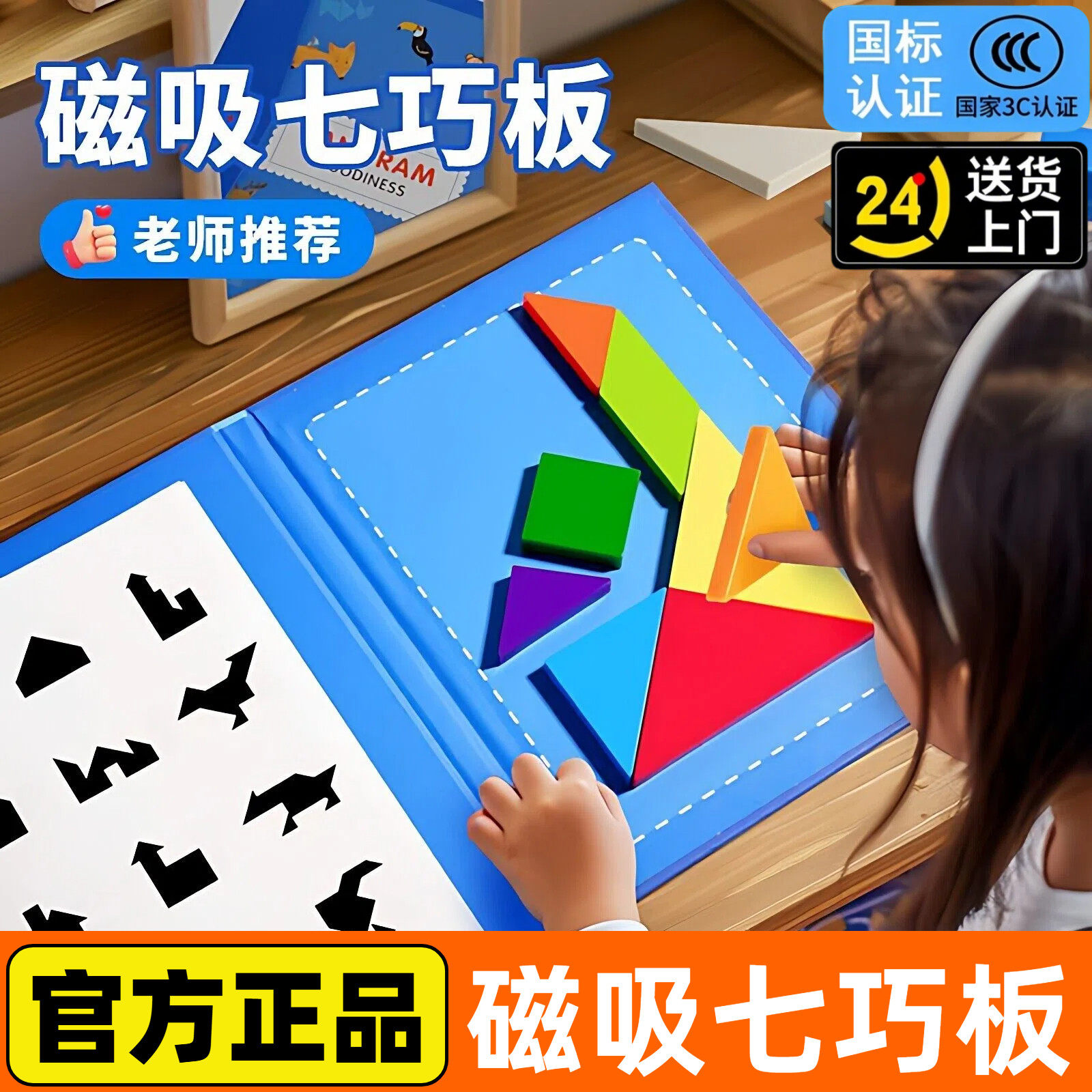 时光学磁性七巧板小学生专用智力拼图一年级儿童幼儿园益智教玩具