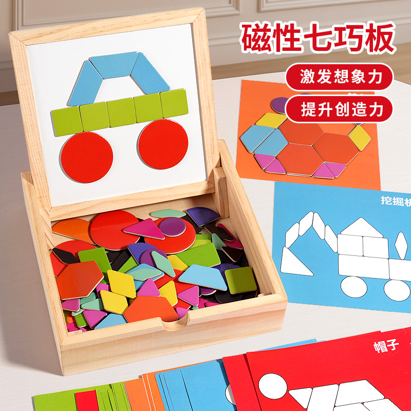 儿童七巧板磁性立体拼图3-6岁磁性益智早教几何玩具小学木质积木