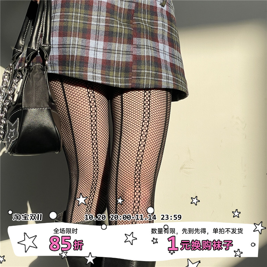 LET ME SEE 日系暗黑风性感网袜千禧辣妹镂空春秋薄款渔网袜纯色